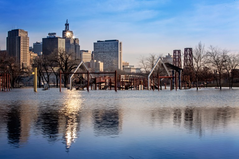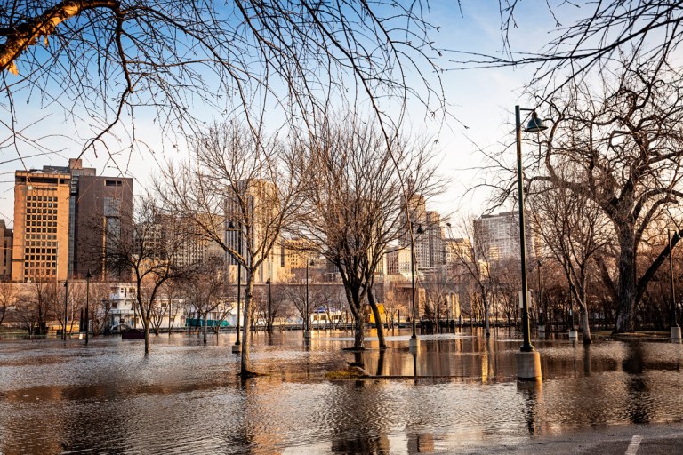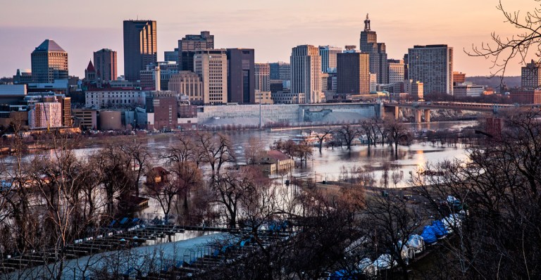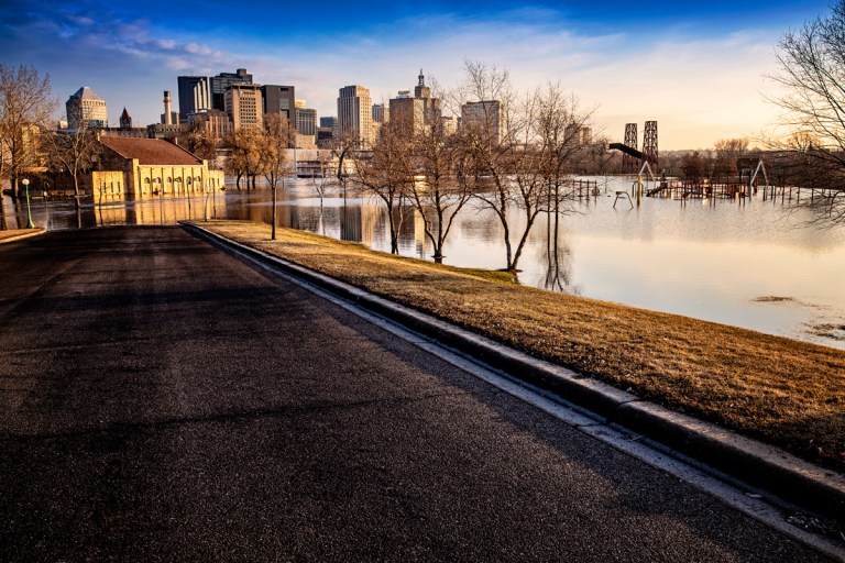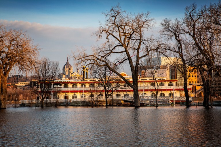 The Mississippi River at St. Paul reached a stage of just over 19 feet on Friday — more than 5 feet above flood stage. The river has spilled over its banks in St. Paul, flooding parts of Harriet Island Regional Park on one side, and closing Shepard and Warner roads on the other.